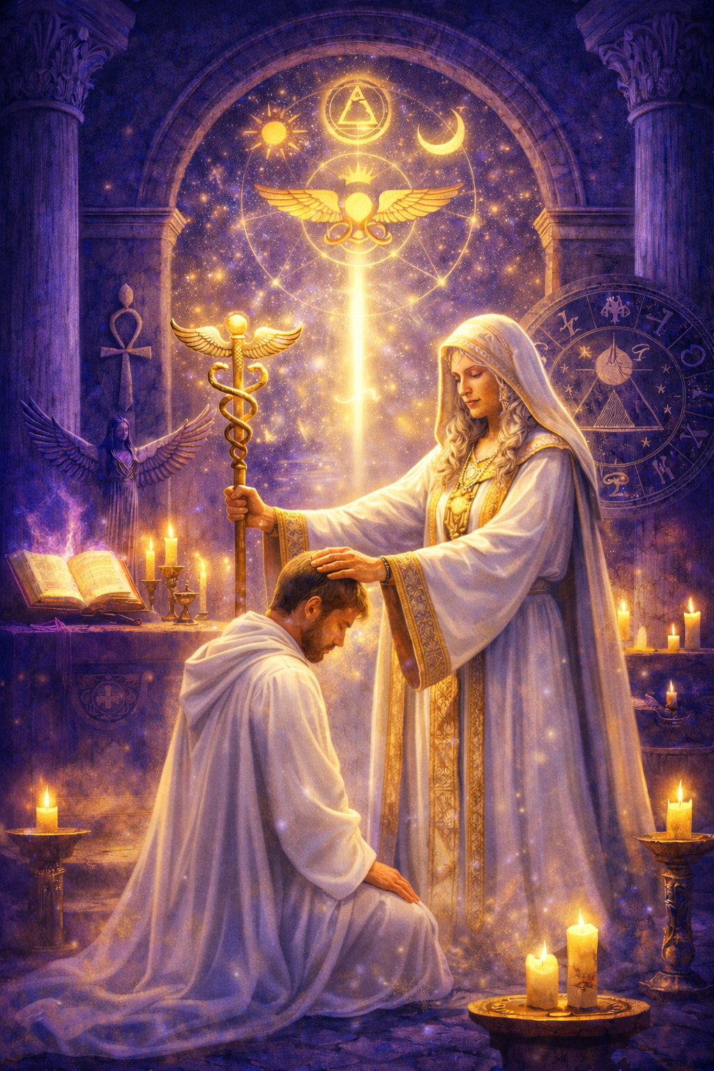 Within the Academy, students explore Tarot, Astrology, Kabbalah, High Magic, and Alchemy in a contemporary framework, enriched by hypnotherapy, NLP, and systemic approaches. This synthesis allows the teachings to be living systems, guiding both inner transformation and practical application. Angelology and the mythological frameworks of Egypt, Babylon, Greece, and Avalon illuminate the symbolic and practical landscape of our work.